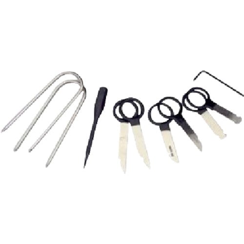 輸入車の純正カーオーディオの取り外しに使用する専用工具です。ねじを使って固定する国産車と違い、ロック式の金具を解除することで、オーディオを取り外すことができます。 |