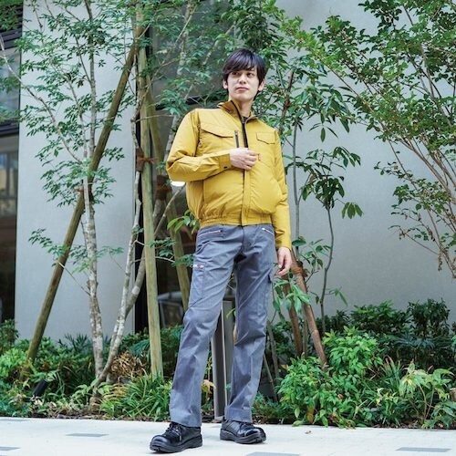 国内生産にこだわった上品な発色のコットン100%で作られたユニセックス仕様の発色の良い空調ブルゾンです。黒色の肩の切り替え部分は、フルハーネス着用を考慮し二重構造に仕上げ耐久性を高めました。 |