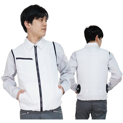 素材に高密度ポリエステルを採用し、気密性を高めたカジュアルな着心地のユニセックス仕様の空調ベストです。