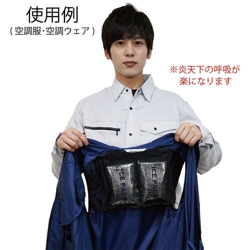保冷剤が常時フレキシブルに身体に密着効果を体感できる空調ベストを新開発しました。素材に高密度ポリエステルを採用し、気密性を高めたカジュアルな着心地のユニセックス仕様です。 |