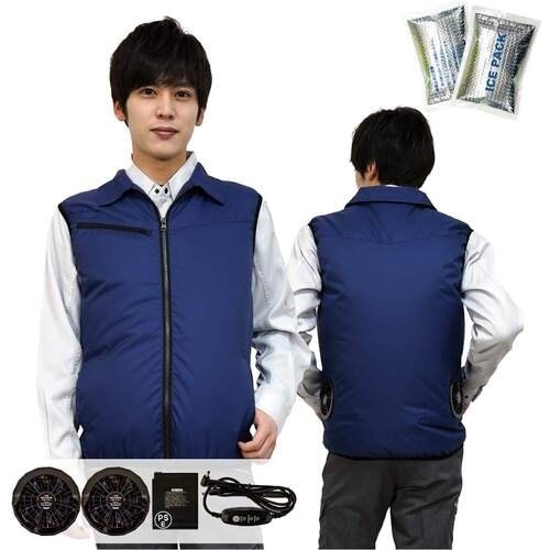 背面のメッシュポケットに入れた付属の保冷剤が身体に常時フレキシブルに密着効果を体感できる空調ベストを新開発しました。 |