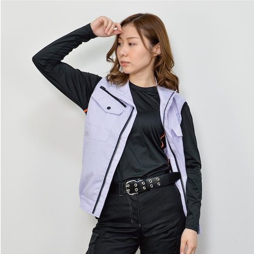 素材に高密度ポリエステル90%+コットン10%の日本製生地を採用し、気密性を高めたカジュアルな着心地のユニセックス仕様の空調ベストです。国産の超高耐光生地ならではの色褪せしにくい素材です。 |