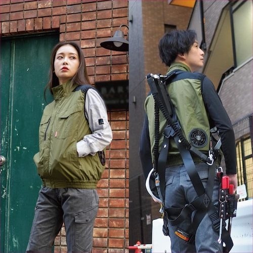 素材に極薄&超高密度コットン100%の日本製生地を採用し、気密性を高めたカジュアルな着心地のユニセックス仕様の空調ベストです。 |