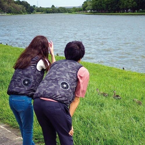 素材に極薄・超高密度ポリエステル100%の日本製生地を採用し、気密性を高めた迷彩柄のカジュアルな着心地のユニセックス仕様の空調ベストです。