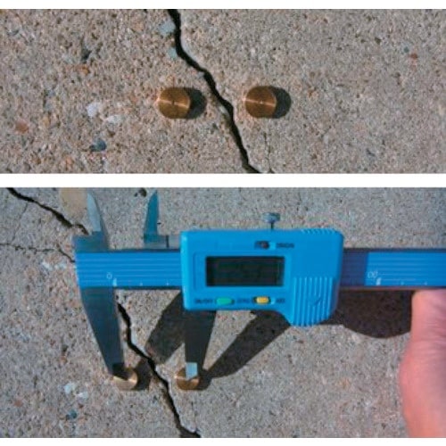 お手持ちのノギスで測定できるコスパに優れたクラック測定用ディスクです。市販のエポキシ接着剤で貼り付けてノギスで測るだけの簡単測定できます。 |