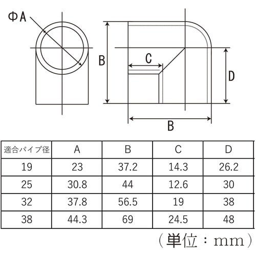 適合パイプ径(mm):19 | その他仕様:シンプルなパイプ継手 | 単位:1個