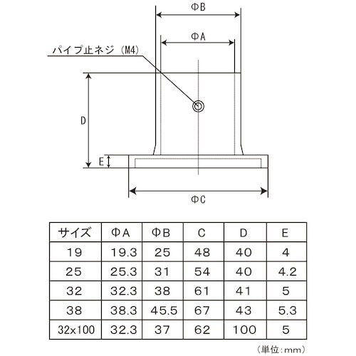 一般的なソケットより高さが有り、止ネジによりパイプ部分を固定できます。
