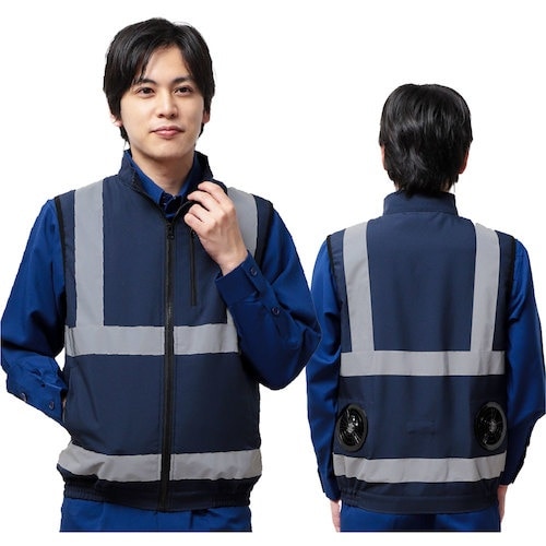 素材に高密度ポリエステル100%の生地を採用し、気密性の優れた着心地の良いユニセックス仕様の空調付安全ベストです。ウェアに高輝度布反射材を縫付け安全性を高めています。