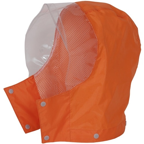 フードは視界をさえぎらないよう、前面がクリアタイプになっています。通勤や雨天時の野外作業に。 |