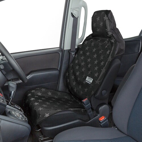 キズや汚れに強い、星柄デザインの防水シートカバー被せるだけの取付け取外しがとっても簡単、ほとんどの前席シートに対応しております。 |