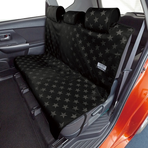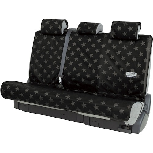 キズや汚れに強い、星柄デザインの防水シートカバー後席シートベルトにも対応しており、安心安全です。 |