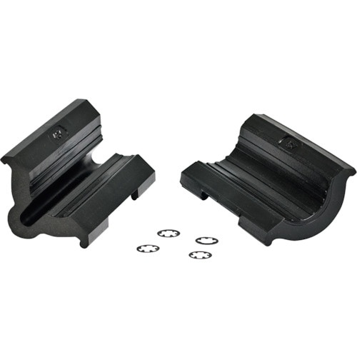 片側のクランプにのみ、ワイヤーを逃がすための溝があるものです。 |