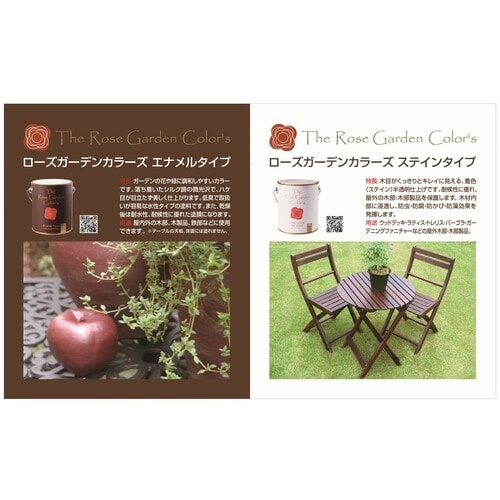 ガーデンの花や緑に調和し、コーディネートしやすいカラーが揃っています。落ち着いたシルク調の微光沢で、ハケ目が目立たず美しく仕上がります。低臭で取り扱いが容易な水性塗料です。屋内外の木部、木製品、鉄部。 |