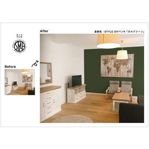 屋内外兼用の水性ペンキです。壁紙の上からそのまま塗れます。乾燥後は、耐水性・耐久性に優れた強い塗膜になります。ほとんど臭いがなく、室内使用での安全基準をクリヤーしています。 |