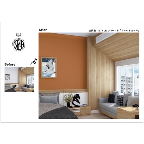 屋内外兼用の水性ペンキです。壁紙の上からそのまま塗れます。乾燥後は、耐水性・耐久性に優れた強い塗膜になります。ほとんど臭いがなく、室内使用での安全基準をクリヤーしています。 |