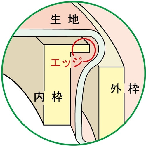 フリーステッチングや刺しゅうに。内枠についているエッジが生地をしっかりはさみ、張りを保ちます。ネジに糸がからまないカバー付です。