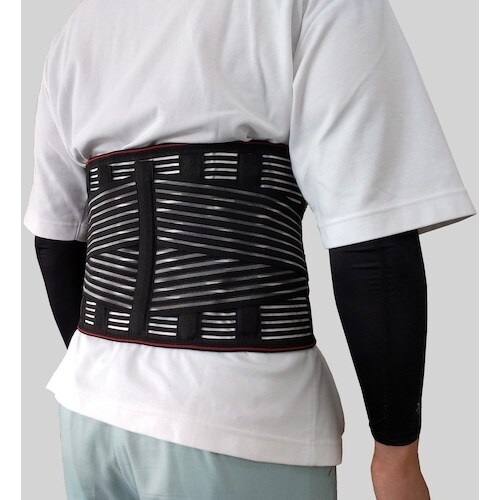 W補助ベルトで腰部をサポートするベルトです。PPボーンも5本使用し、腰と背中をしっかりサポートします。伸縮性・通気性に優れたメッシュ生地を使用しています。 |