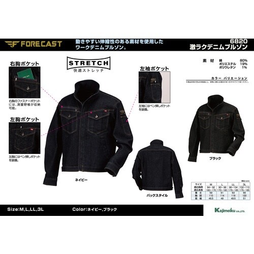 カジメイク カジメイク 6820 激ラクデニムブルゾン ネイビー 3L 6820553L 1着 A04W-1802