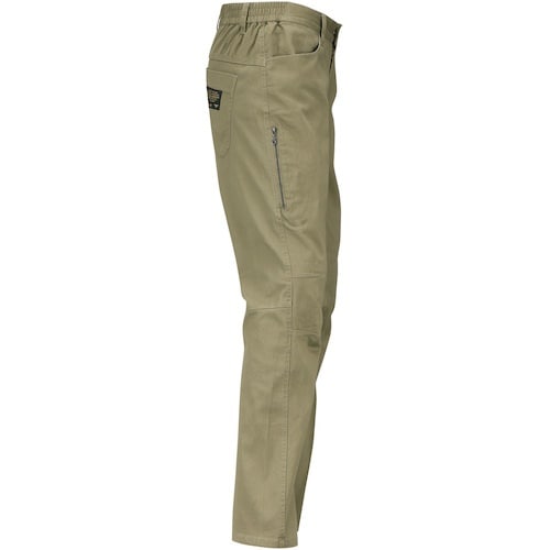 動きやすい伸縮性のある素材を使用した綿98%のワークカーゴパンツです。動きやすい股下マチ仕様で両脇にファスナー付きポケット、カーゴポケットがそれぞれ装備されています。 |
