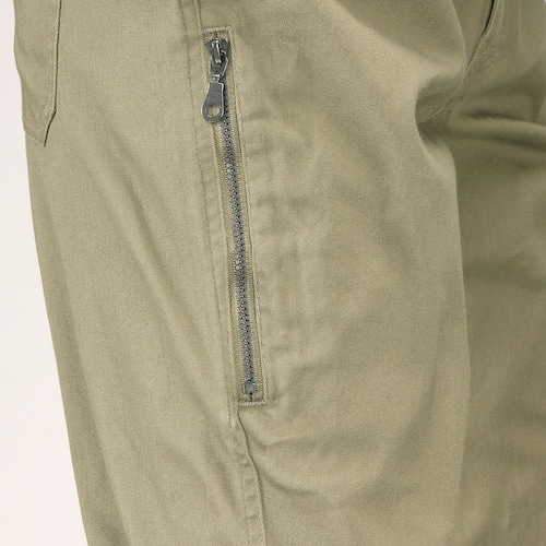 動きやすい伸縮性のある素材を使用した綿98%のワークカーゴパンツです。動きやすい股下マチ仕様で両脇にファスナー付きポケット、カーゴポケットがそれぞれ装備されています。