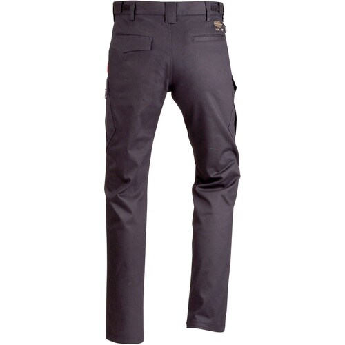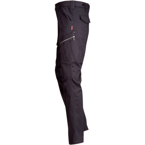 すっきりしたシルエットのスリムカーゴパンツです。右脇にペン挿し付きカーゴポケットを装備しています。左脇にはファスナー付き2重カーゴポケットを装備しています。