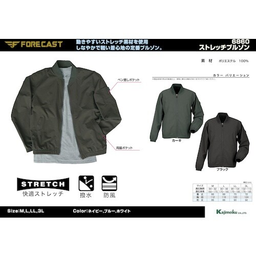 しなやかで軽い着心地のストレッチ性定番ブルゾンです。作業に。端境期に。 |