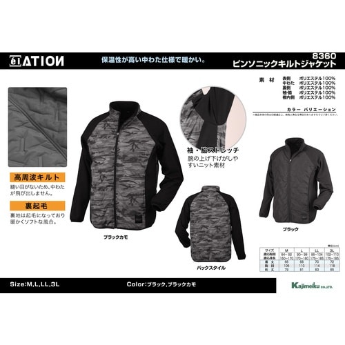 カジメイク カジメイク ピンソニックキルトジャケット ブラック 3L 8360913L 1着 A04W-3837
