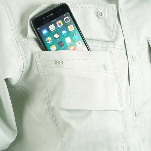 カジメイク カジメイク 8552 サマーツイル長袖シャツ シルバーグレー M 855272M 1着 A04W-3877