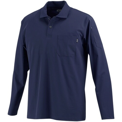 接触冷感素材で快適な着心地。ストレッチで動きやすい長袖ポロシャツです。作業に。