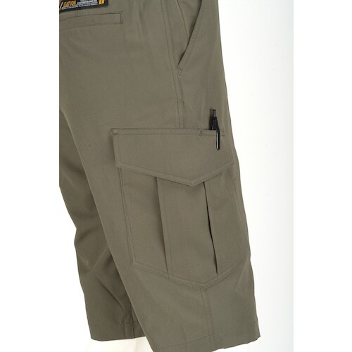 膝丈ミディアムレングスショートパンツ生地裏面の凹凸で汗をかいていもさらりとした肌触り。縦横ストレッチではき心地抜群。作業に。普段履きに。