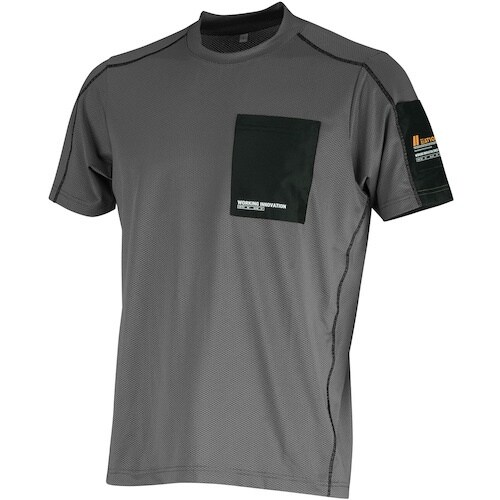 遮熱糸と点接触で快適なクルーネックシャツ高い遮熱性で衣服内の温度上昇を抑えるシェイドドライナー。特殊鉱石をナノレベルで繊維に練り込み、繊維に赤外線反射機能を付与した遮熱糸を使用。作業に。スポーツに。 |