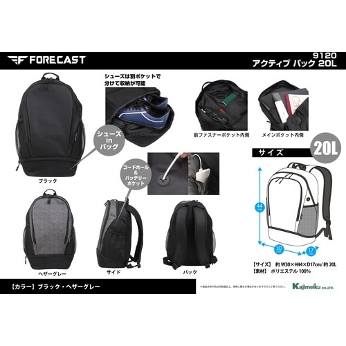 カジメイク カジメイク アクティブパック20L ヘザーグレー 91207020L 1個 A04W-4407