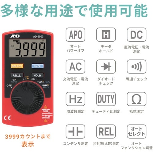 A&D デジタルマルチメーター AD5503 一般(ISO)校正付(検査成績書+トレサビリティ体系図) AD550300A00 1台
