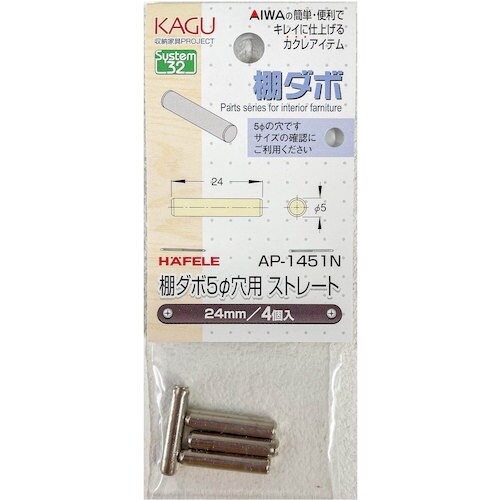 アイワ金属 棚ダボ 5φ穴用ストレート 24mm