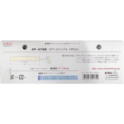 アイワ金属 アイワ金属 ロアールハンドル 160mm AP474W 1個 A04W-7038