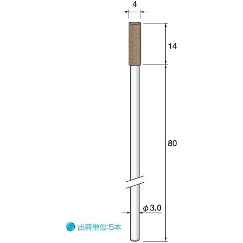 全長(mm):80 | 幅(mm):14 | 粒度(#):180 | 外径(mm):4 | 軸径(mm):3 | その他仕様:ロングシャンクゴム砥石は…