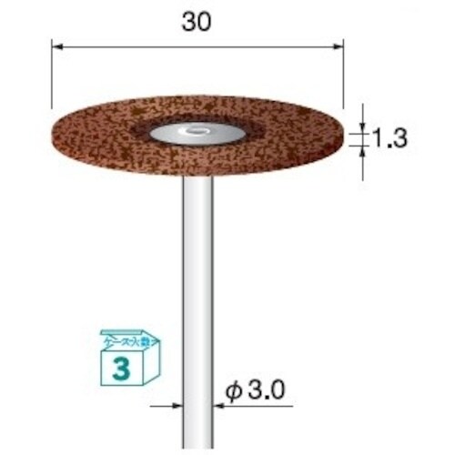 粒度(#):400 | 外径(mm):30 | 軸径(mm):3 | 外径×厚み(mm):Φ30×1.3 | その他仕様:ディスク上に圧縮した砥粒入り…