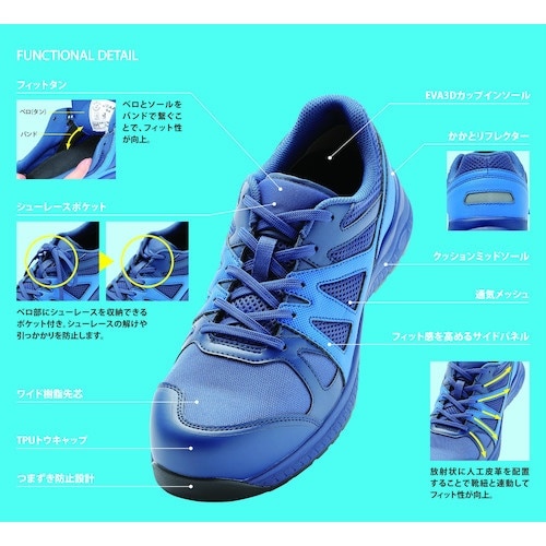 「動きやすい」フィット感のプロスニーカーです。最高のフィット感を求めて靴型を刷新し、現場のハードな動きでも靴内で足がブレにくいです。