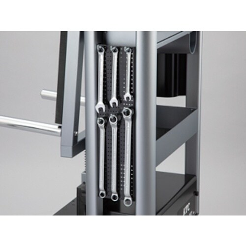 タイヤリフター(AWL101)のオプションです。フックセットD(SKR−54−D/別売)を併用することで、吊り下げ収納が可能です。 |