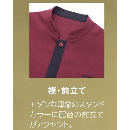 麻のようにさらっとした肌触りと風通しのよい涼感素材。塩素系漂白剤による退色を防ぐ素材機能から、元の色合いが持続します。水仕事など、腕まくりの手間なく作業ができる七分袖。