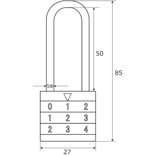 キー番号:固定式 | シリンダ径(mm):5 | 幅(mm):27 | 厚さ(mm):27 | 全長(mm):85 | 単位:1個