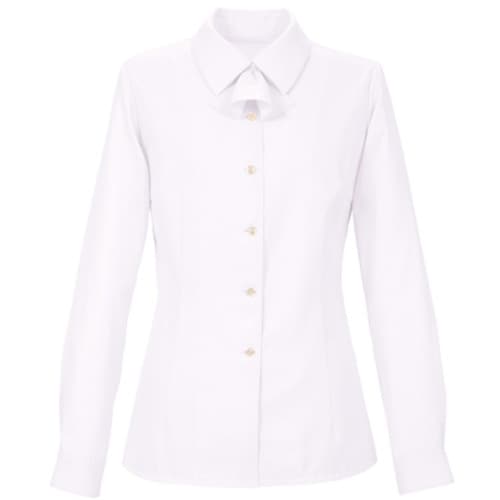 光沢とマットの陰影により細かいダイヤ状の格子を表現し、上品さとおしゃれ感を演出したチェック柄の長袖ブラウス。綿混で肌触りのよい素材です。