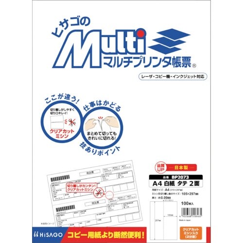 罫線が印刷されていない無地の用紙です。罫線と文字を同時に印刷するので、印刷ズレの心配はなく、何種類もの帳票をストックしておく必要がありません。 |