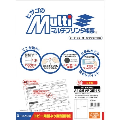 罫線が印刷されていない無地の用紙です。罫線と文字を同時に印刷するので、印刷ズレの心配はなく、何種類もの帳票をストックしておく必要がありません。 |