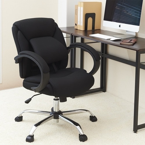 腰への負担を減らし正しい姿勢にサポートする内蔵型サポートクッション付きエグゼクティブチェア。 |