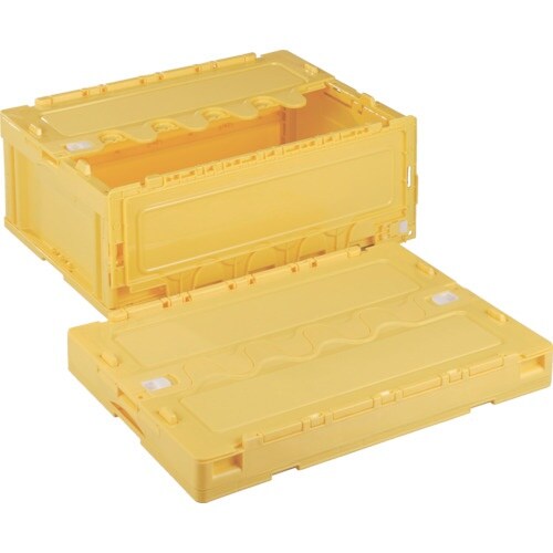 蓋付の折りたたみコンテナです。容量:55リットルです。不要な時は折りたたみ、省スペースで保管に。 |
