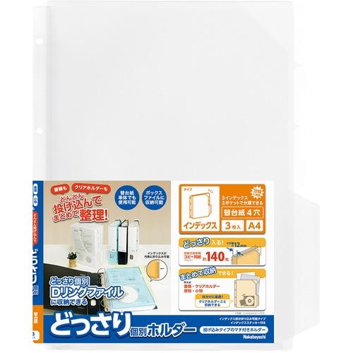 ナカバヤシ どっさり個別Dリング専用替台紙4穴 インデックス 3枚パック CH4134C4H 1組(3枚)