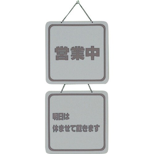 表示内容:営業中−明日は休ませて戴きます | 縦(mm):200 | 横(mm):200 | 厚さ(mm):3 | 色:パールグレー | タイプ:くさ…