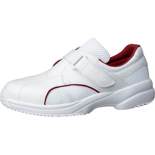 柔らかい人工皮革を使用し、ソフトな履き心地です。消臭・抗菌防臭・防カビ効果で靴内を清潔に保ちます。側面にはメッシュを使用し、通気性を高めました。看護師用。介護士用。