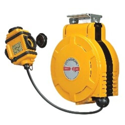 大型機器用の自動巻リールです。自動巻き取りでスムーズな出し入れです。ストッパーフリータイプです。ソフトンVCT電線を使用しています。防塵・防雨キャップ付トリプルコンセントを採用しています。 |